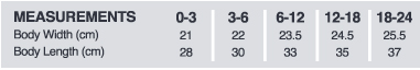 | Body Length (cm) | 28.5 | 30.5 | 32.5 | 34.5 | 36.5 |